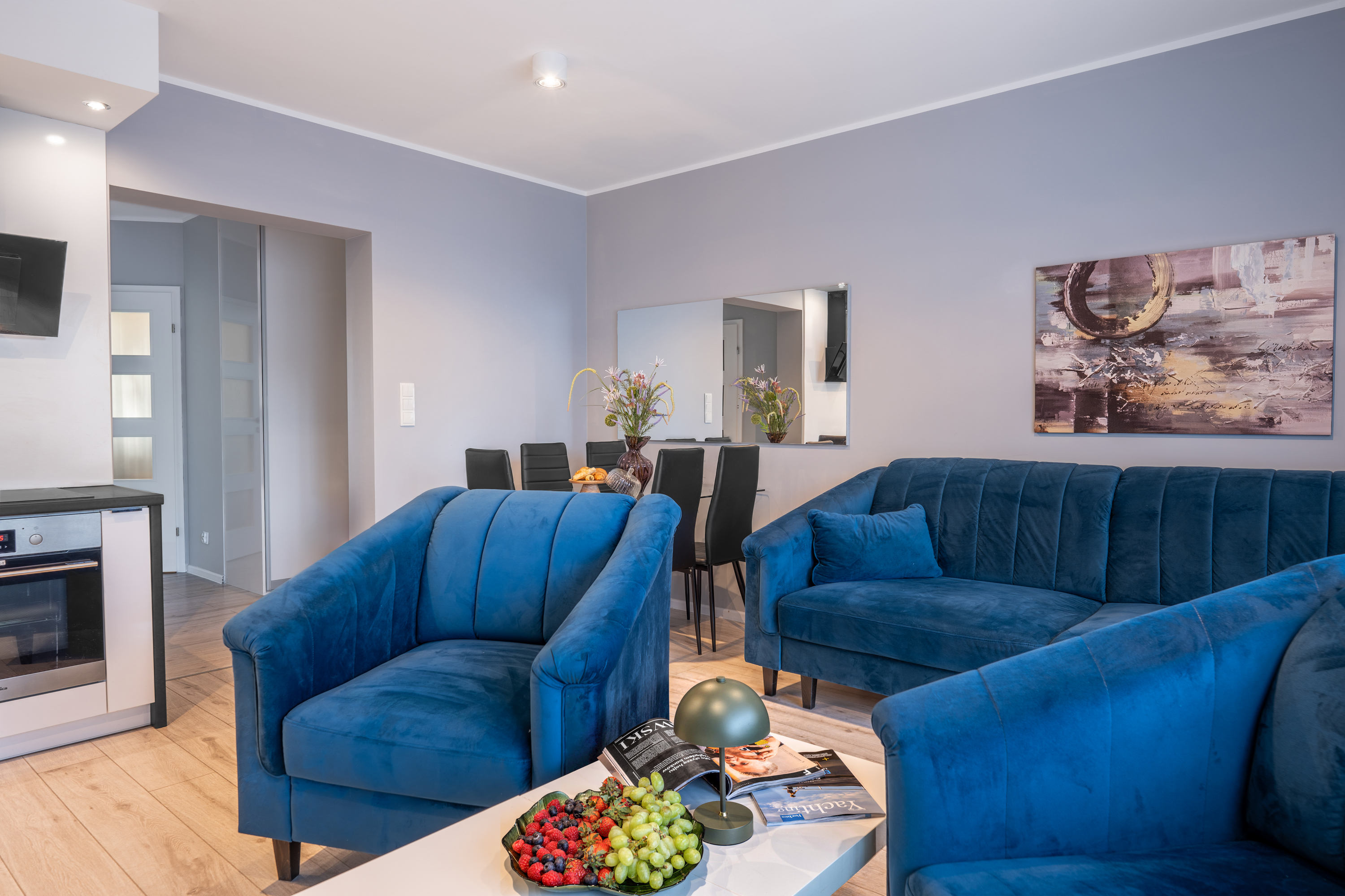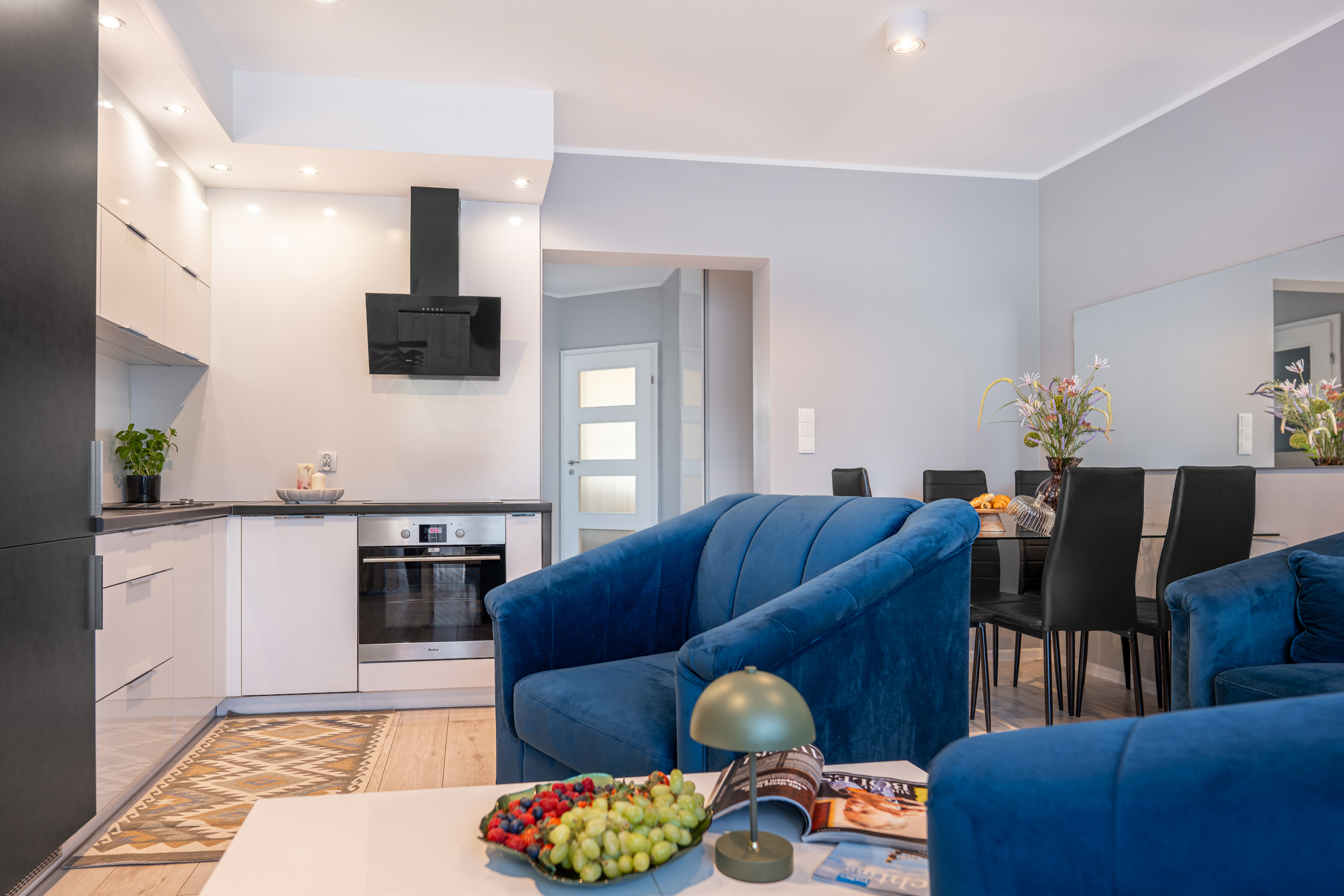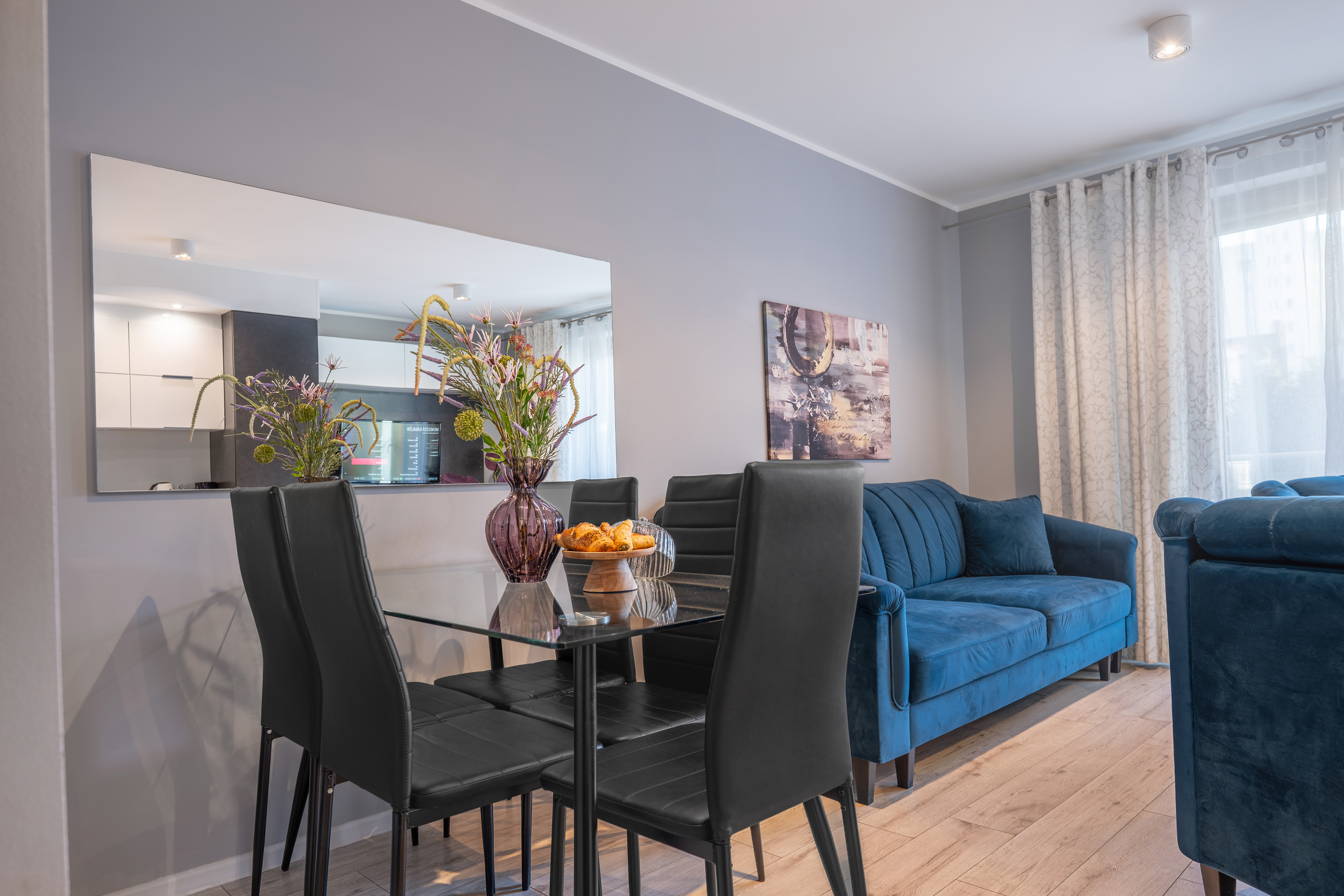 Modern eingerichtetes, voll ausgestattetes, komfortables Apartment (50 m2) mit zwei Balkonen im ersten Stock (Aufzug) des luxuriösen Komplexes Kwartał Róży Wiatrów mit Restaurant und Behandlungszentrum in Swinemünde. Die Wohnung besteht aus einem Wohnzimmer mit offener Küche, einem Schlafzimmer, einem Zimmer und einem Badezimmer. Ausgestattet mit einem Doppelbett, 2 Doppelschlafsofas und drei großen Kleiderschränken. Ideale Lage in einer ruhigen Gegend des Resorts, 400 Meter vom Meer entfernt. Gleich daneben befindet sich ein schöner Park, ideal für Familien- und romantische Spaziergänge und Fahrradausflüge mit kleinen Kindern. Ein perfekter Ausgangspunkt nicht nur für den Strand. Moderne Wander- und Radwege führen uns zu den Küstenstädten Deutschlands und der Swinemünde-Promenade. Kostenlose Tiefgarage für unsere Gäste.