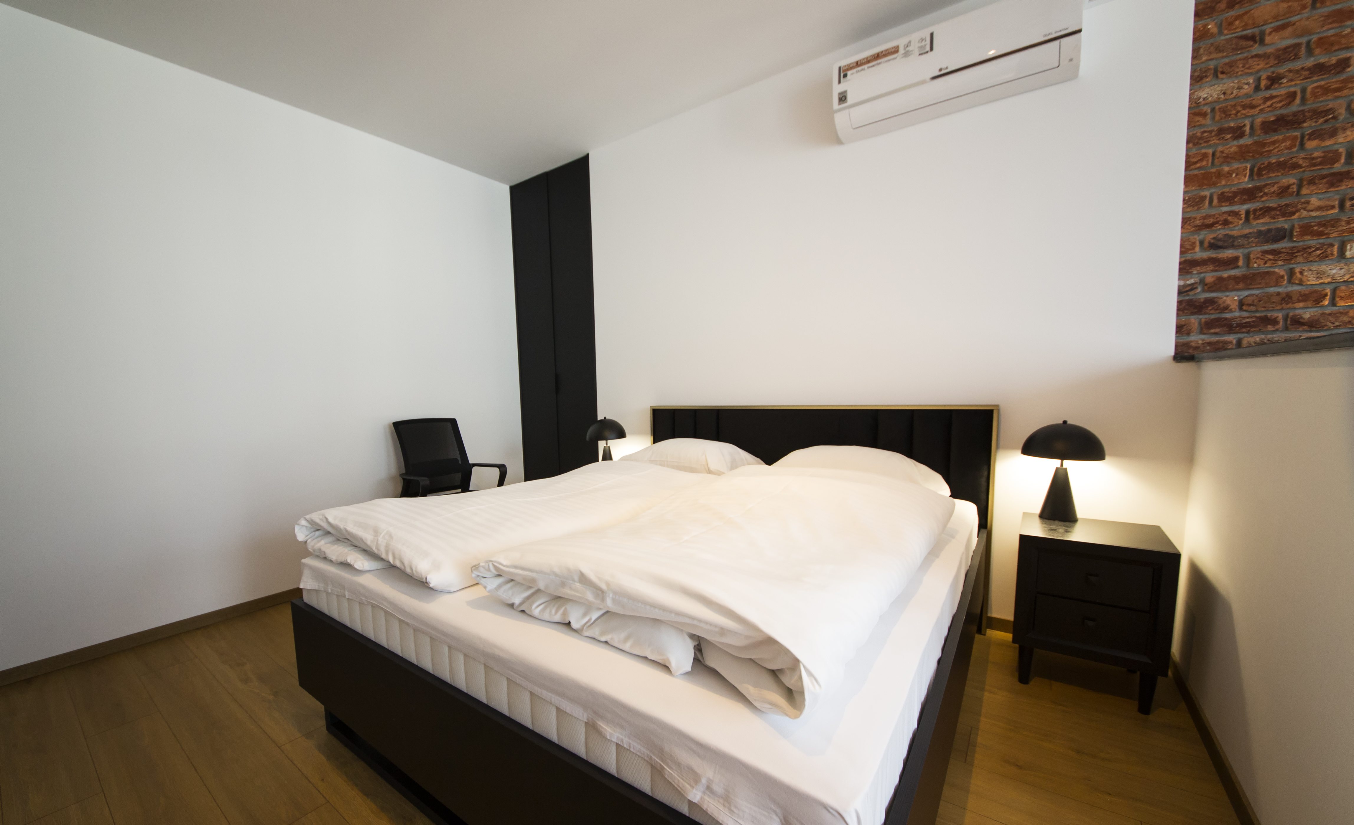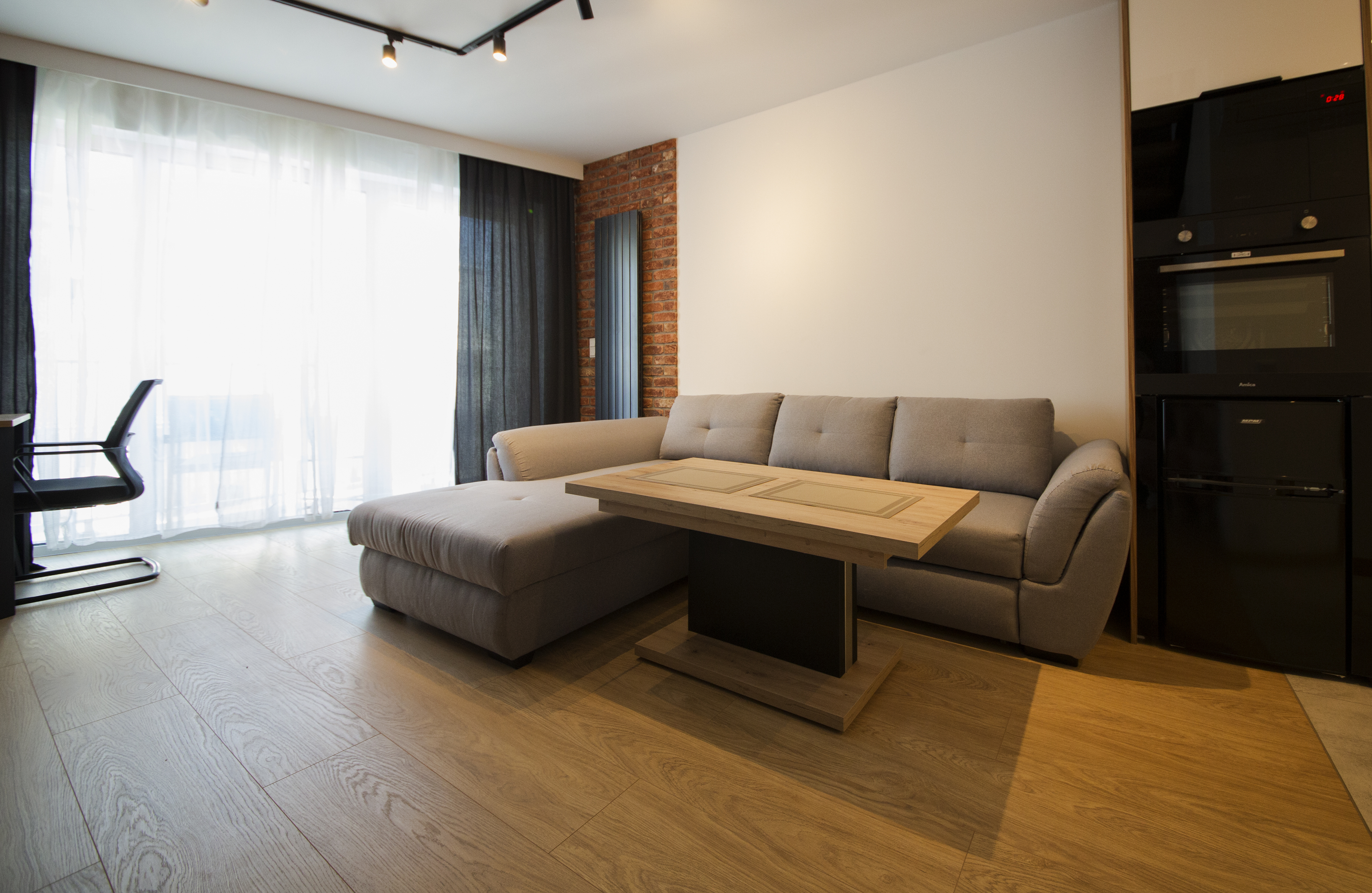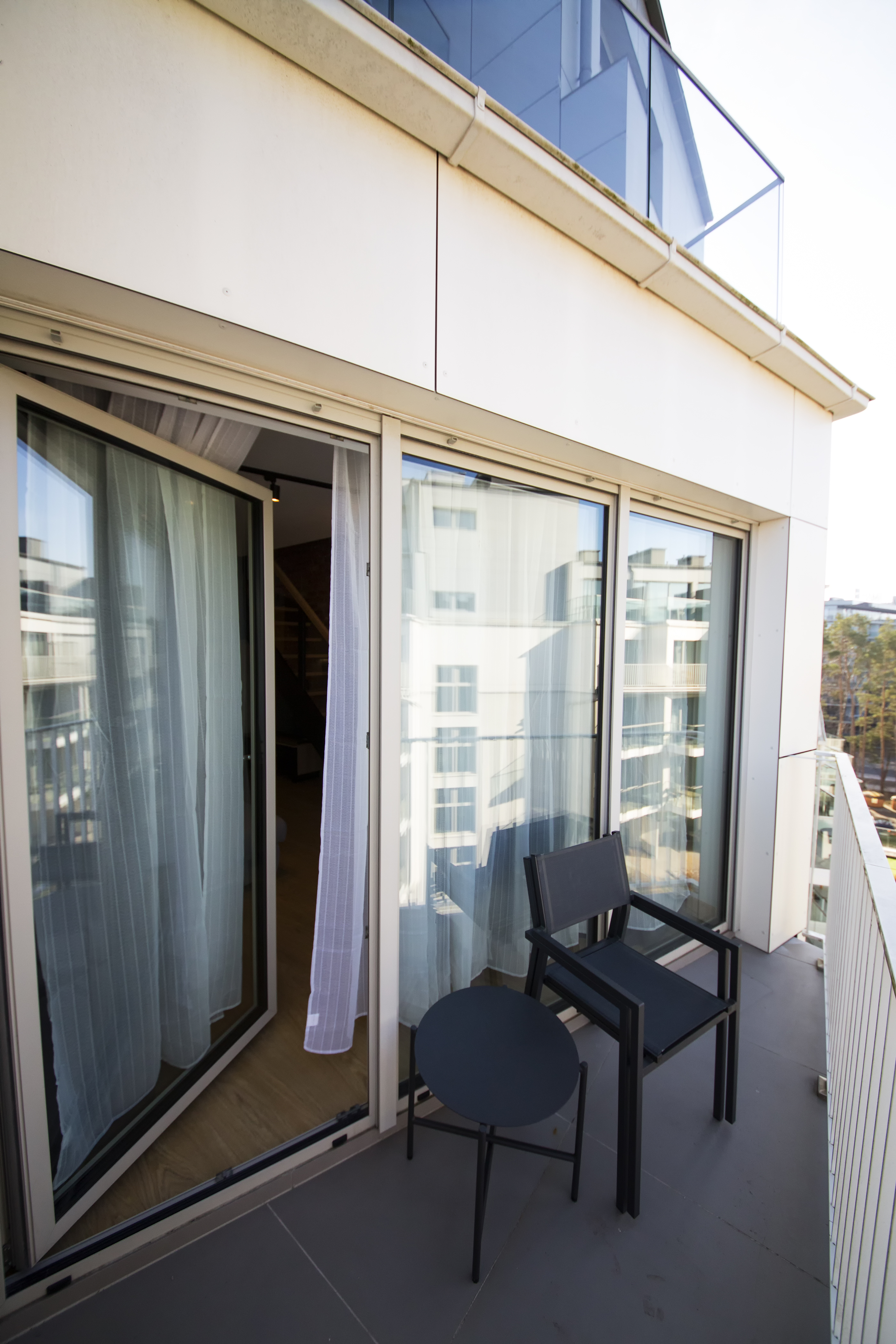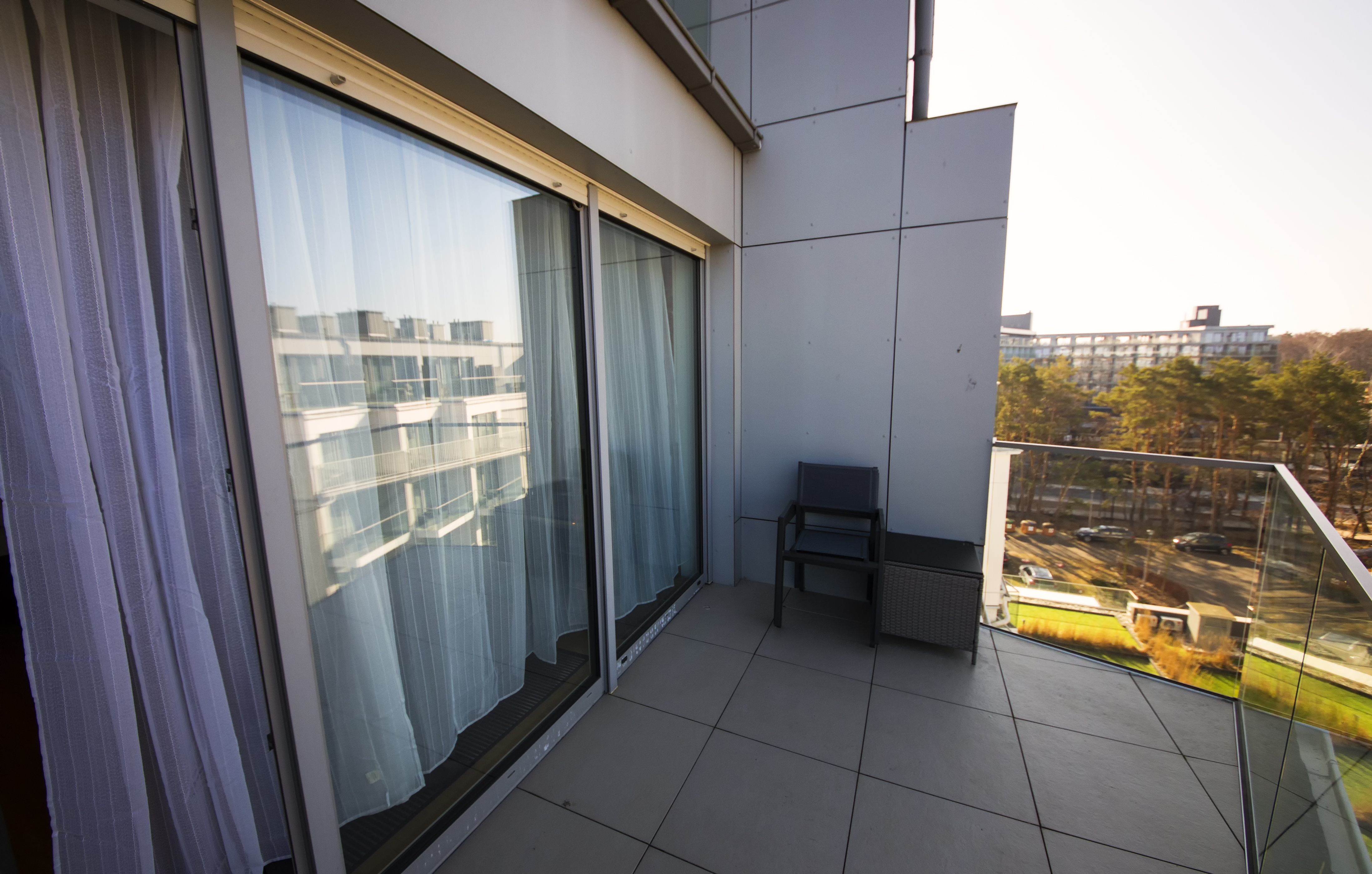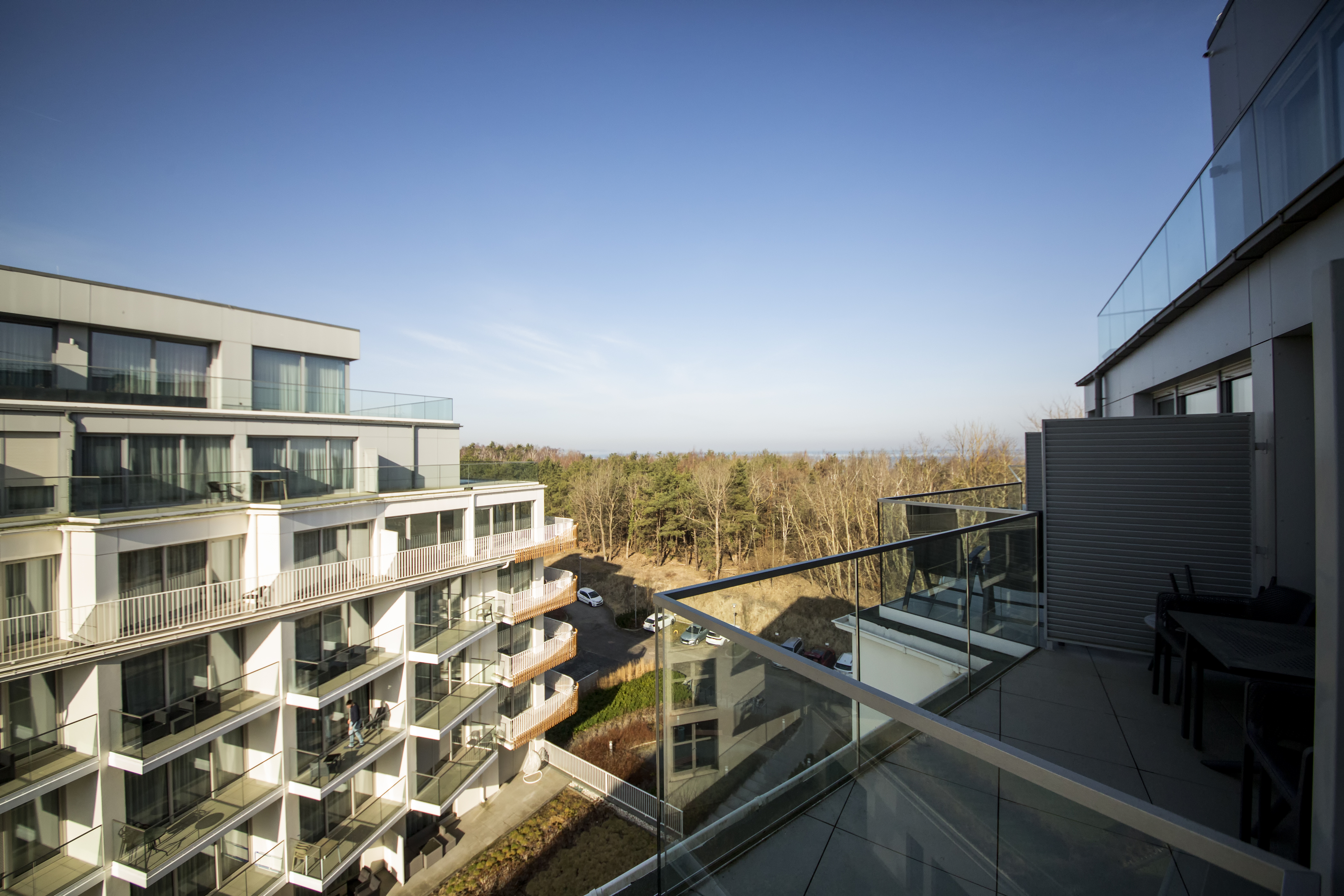 A comfortably furnished two-level apartment consisting of a bedroom, a bathroom (with a shower), a large living room with a fully equipped kitchenette, which opens onto a balcony, and a bedroom on the second floor with access to a second balcony. The apartment is located on the 4th floor (elevator) in a newly built building (2020) on the edge of Spa Park (30 meters), in a quiet and peaceful district of the city. The beach is 50 meters away, and the promenade is 150 meters away. Free parking is available in the underground garage.