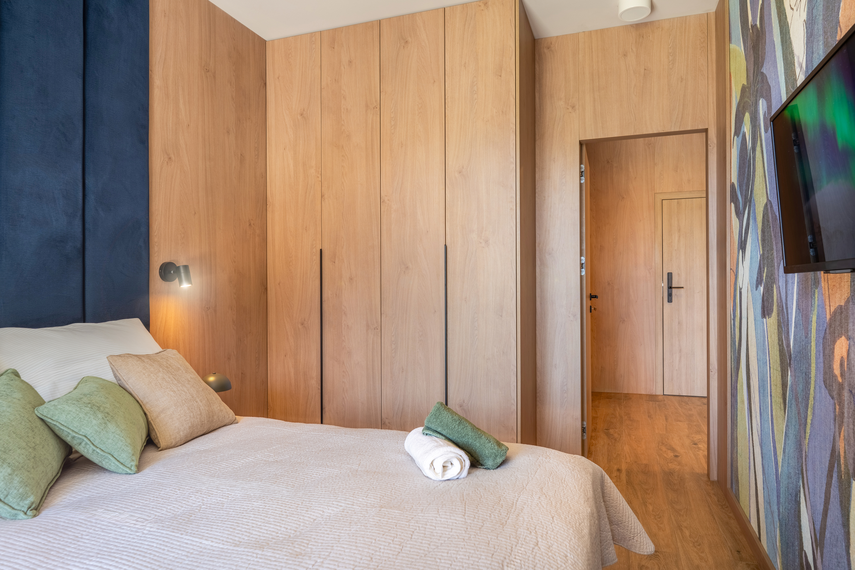 Apartament składa się z salonu z otwartą kuchnią, sypialni z łóżkiem małżeńskim oraz łazienki. Duży balkon pozwoli Państwu na odpoczynek w upalne dni, w chłodniejsze wieczory atmosferę podgrzeją zamontowane na zewnątrz promienniki, które pozwolą cieszyć się klimatem nocnych biesiad. Kawa o poranku również będzie smakować wybornie… Widok na Martin Luther Tower zostawi niezapomniane wspomnienia.