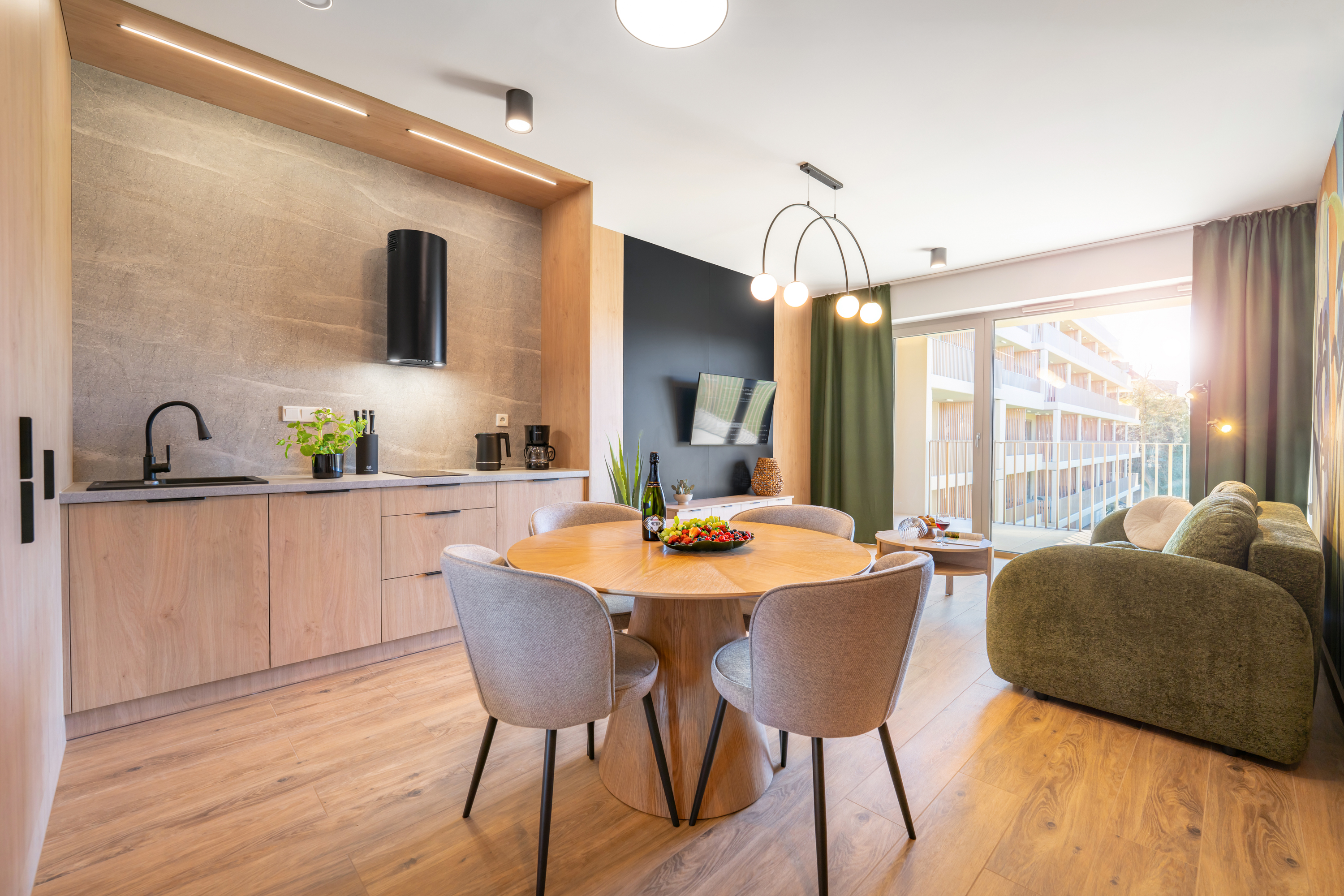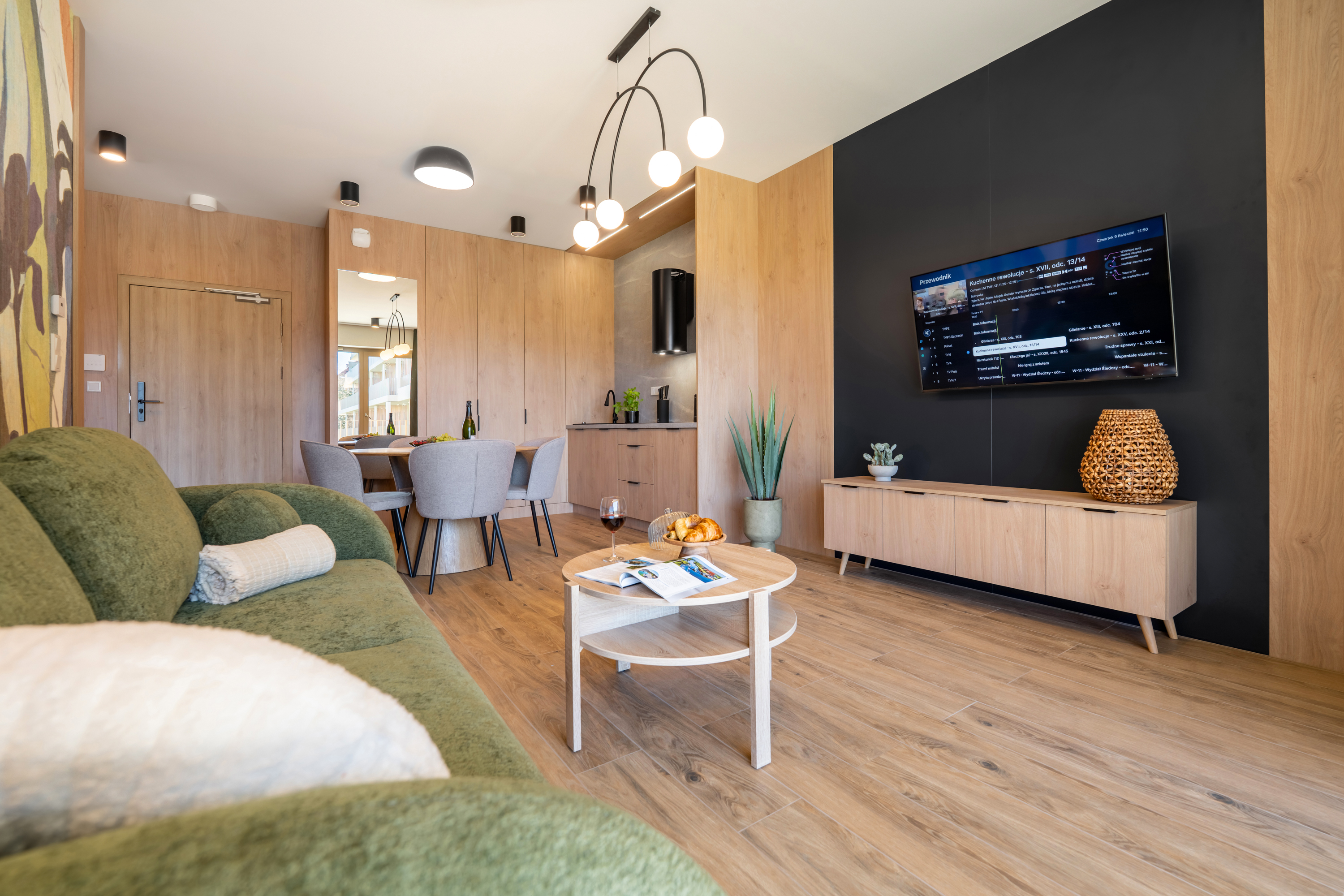 Zapraszamy do nowocześnie zaaranżowanego, w pełni wyposażonego apartamentu (55m) mieszczącego się na 2 piętrze (winda) luksusowego kompleksu GREENERI PARK w Świnoujściu.